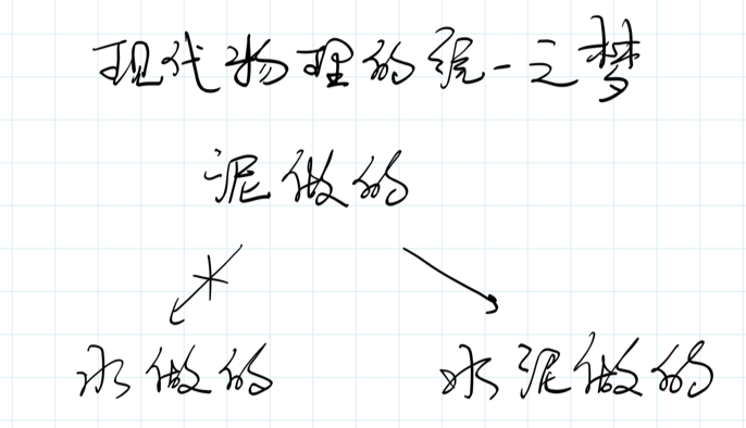 “终极理论之梦”,这个词其实是温伯格的一本科普书的名字,那么在这里讲统一的概念,我们也借用温伯格这本书里边的讲述。你随便拿出一样东西——一支笔、一张纸、一张桌子,随便什么东西;然后我们开始问问题:“这支笔的颜色?”、“这支笔的物理性质?”、“这支笔的功用?”等等;我们追问这些问题的时候,最后都能追问到:世界是由哪些基本粒子组成的,而这些基本粒子之间有哪些相互作用?