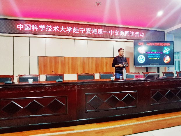 22日,团队一行在我校研究生支教团服务地海原一中、二中、三中开展科普报告和科技互动活动。薛永泉在海原一中作题为《凝望,与超大质量黑洞共舞》的科普报告。他用幽默风趣的语言从天文学简介与黑洞究竟是什么谈起,追根溯源,深入浅出地展示天文学的魅力以及超大质量黑洞的最新研究进展和未解之谜,讲座现场气氛热烈。