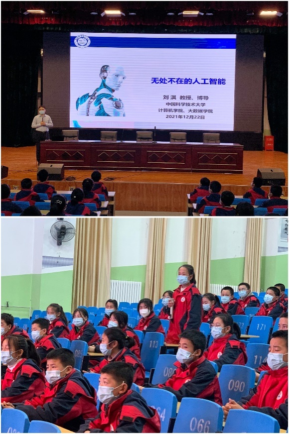 刘淇为海原三中的学生作《无处不在的人工智能》科普报告,解读了人工智能在我们生活中的应用,并鼓励学生“珍惜美好时光,提升知识水平;探索有趣世界,共创智能未来”。在互动环节,孩子们与报告人畅想了人工智能的未来。