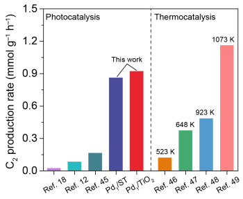 甲烷作为一种重要的碳基小分子,在自然界分布广泛,是天然气、页岩气、可燃冰、沼气等的主要成分。迄今为止,甲烷的使用仍以燃烧为主,导致排放出大量的二氧化碳。甲烷作为化工原料主要用于合成氨、甲醇及其衍生物,但其用量仅占天然气消耗量的5%-7%。虽然甲烷储量远远超过石油储量,但作为化工原料其开发程度远无法与石油相比。如何将储量巨大的甲烷资源转化为具有更高经济附加值的燃料或化工产品,具有重要的科学意义和应用前景。太阳能作为最为丰富和清洁的能源,可通过光催化方式在温和条件下驱动甲烷转化为多碳燃料或化学品。近年来,中国科学技术大学熊宇杰教授和龙冉教授研究团队发展了一系列光/光电催化方法,实现了甲烷高选择性转化制乙烷、乙烯和乙二醇(J. Am. Chem. Soc. 2021, 143, 269;Angew. Chem. Int. Ed. 2021, 60, 9357)。