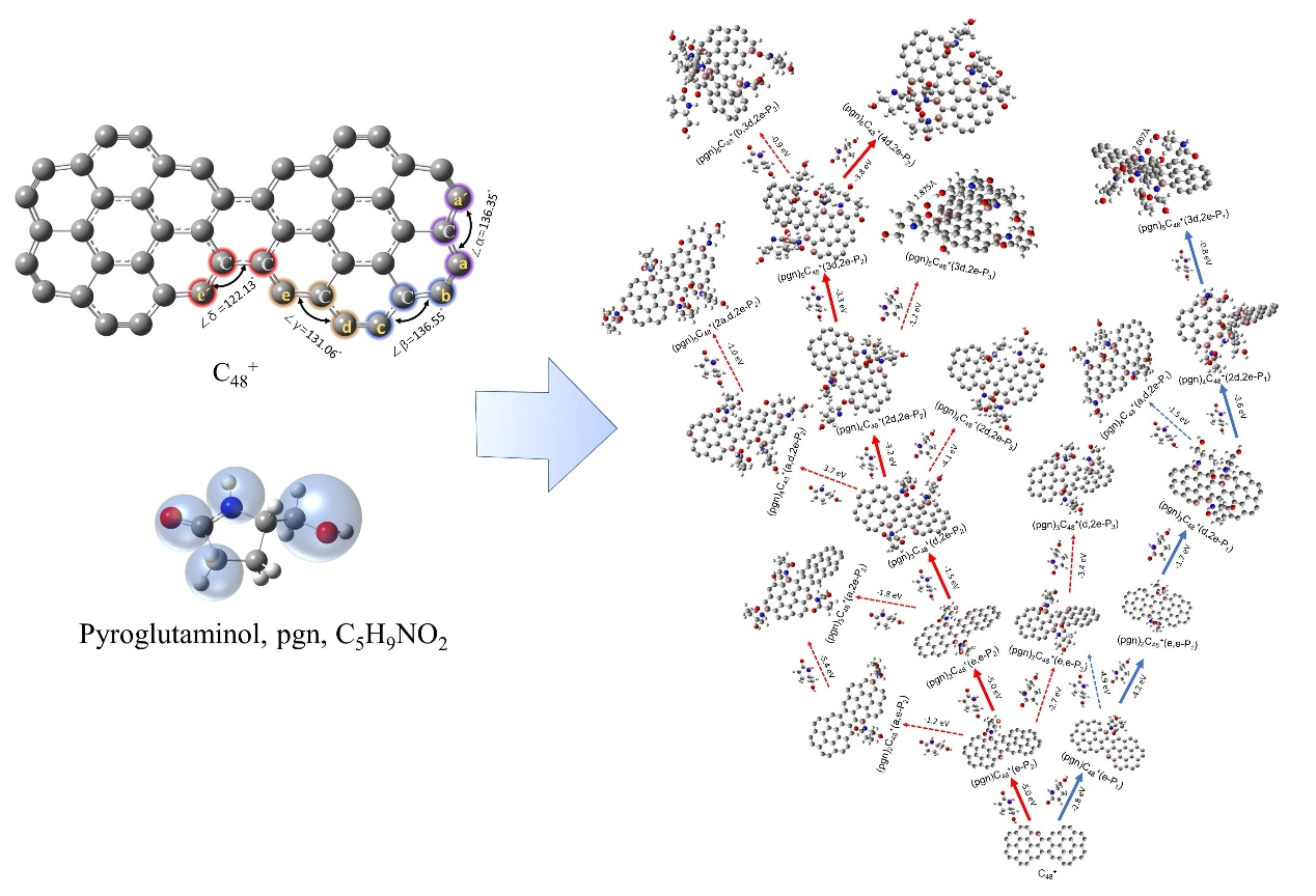 实验及理论研究表明,复杂的有机分子或其他相关生命前分子可以有效地吸附在星际介质中的小尘埃颗粒上。根据实验及理论计算结果,在(C5H9NO2)1-6C48+, n=[0,5])和C5H9NO2 之间发生离子-分子反应,有大量反应途径,会产生非常复杂的具有三维结构的大质量的分子团簇。这些分子团簇(石墨烯-有机分子团簇)为星际介质中自下而上中的大型复杂生命前分子提供了可能的形成和化学进化途径。离子-分子反应合成路线对研究星际化学至关重要,并表明气相星际物质在自下而上的生长过程中可以直接形成大型复杂的有机衍生物。这种有趣生命前分子团簇的产生为有机物分子在星际空间中的演化过程提供了更深入的理解。研究结果还表明,有机分子可以积聚在星际介质中的小尘埃颗粒上(例如,大质量的多环芳香烃或石墨烯),同时这一积聚过程也支持了生命前分子可以通过彗星、陨石或星际尘埃颗粒输送到地球这一观点。
