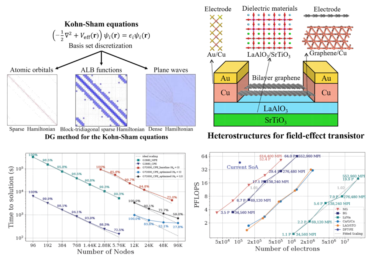 图2 基组离散Kohn-Sham方程、场效应管异质结体系、求解时间和性能