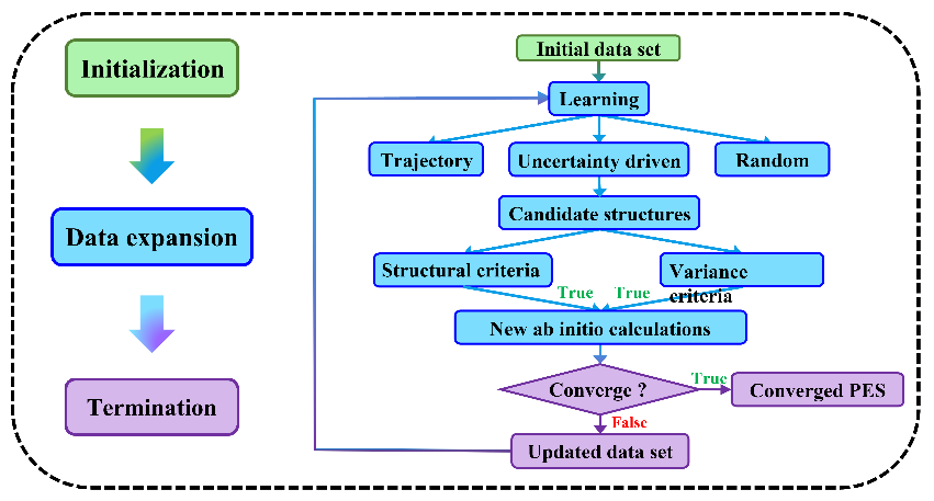 机器学习已经广泛应用于化学、物理、生物和材料科学等许多领域,可以通过对量子化学数据的学习,精确预测各种物理和化学性质。其中,原子神经网络(AtNN)方法被广泛应用于跨越不同尺度体系的物理化学尤其是化学动力学研究中。这类方法将体系性质拆分为每个原子的贡献,计算量随总原子数目线性增加,并且可以满足分子、凝聚相和界面体系的不同对称性及周期性,进而实现复杂体系精确且高效的分子动力学模拟。