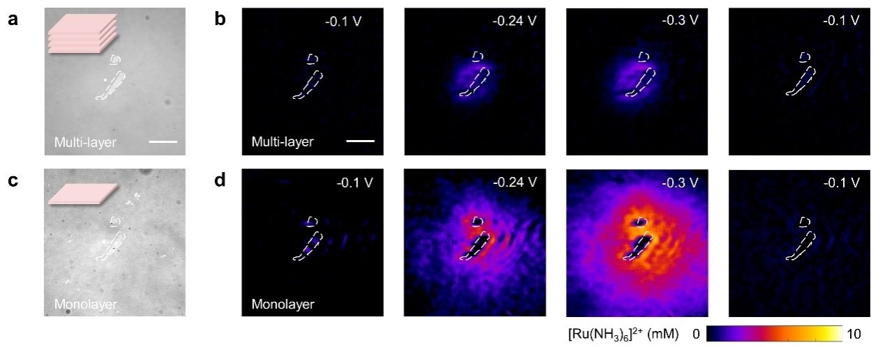 图1.单个二硫化钼纳米片的充电和催化过程成像分析示意图