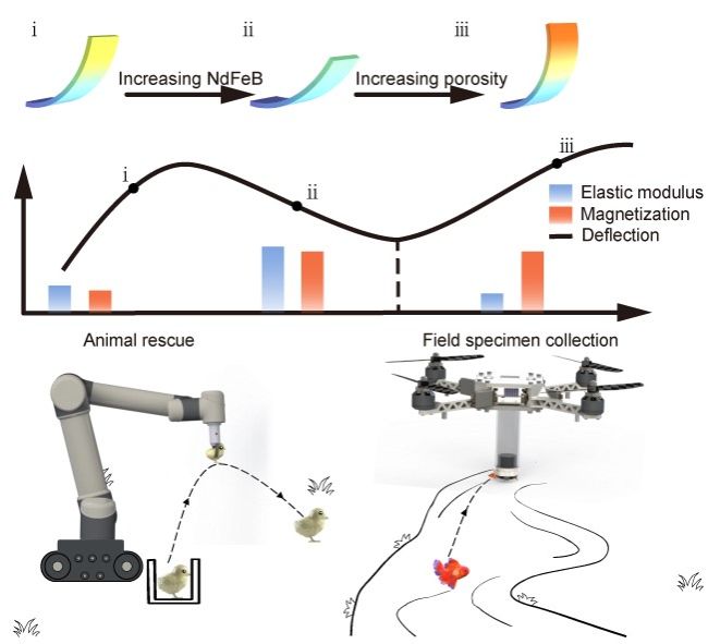 近日,中国科学技术大学工程科学学院、人形机器人研究院李木军副教授、张世武教授,联合生命科学与医学部胡兵教授,提出了一种新型多孔磁性软体抓手(PMSG),通过在柔性磁性硅胶中融入多孔设计,使得PMSG能够迅速且安全地抓取脆弱的生物活体。成果以“Porous Magnetic Soft Grippers for Fast and Gentle Grasping of Delicate Living Objects”为题发表在国际期刊《先进材料》上。