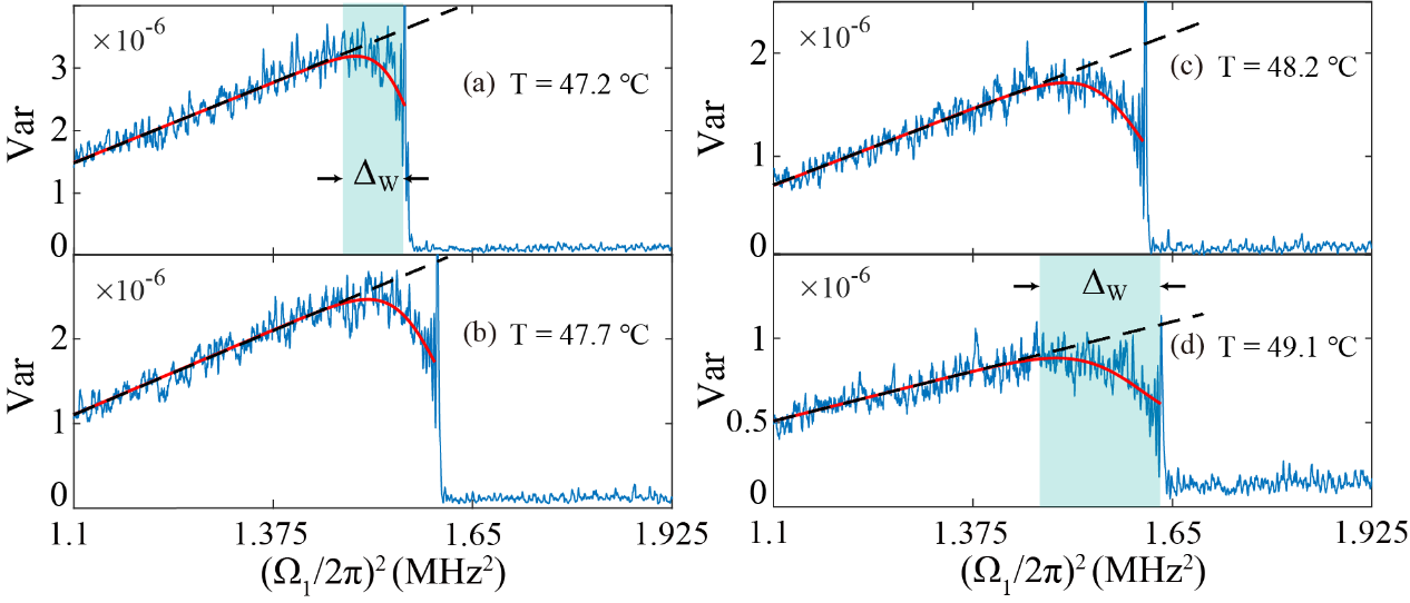 图 3 :不同温度下测量的方差和预警信号特征。