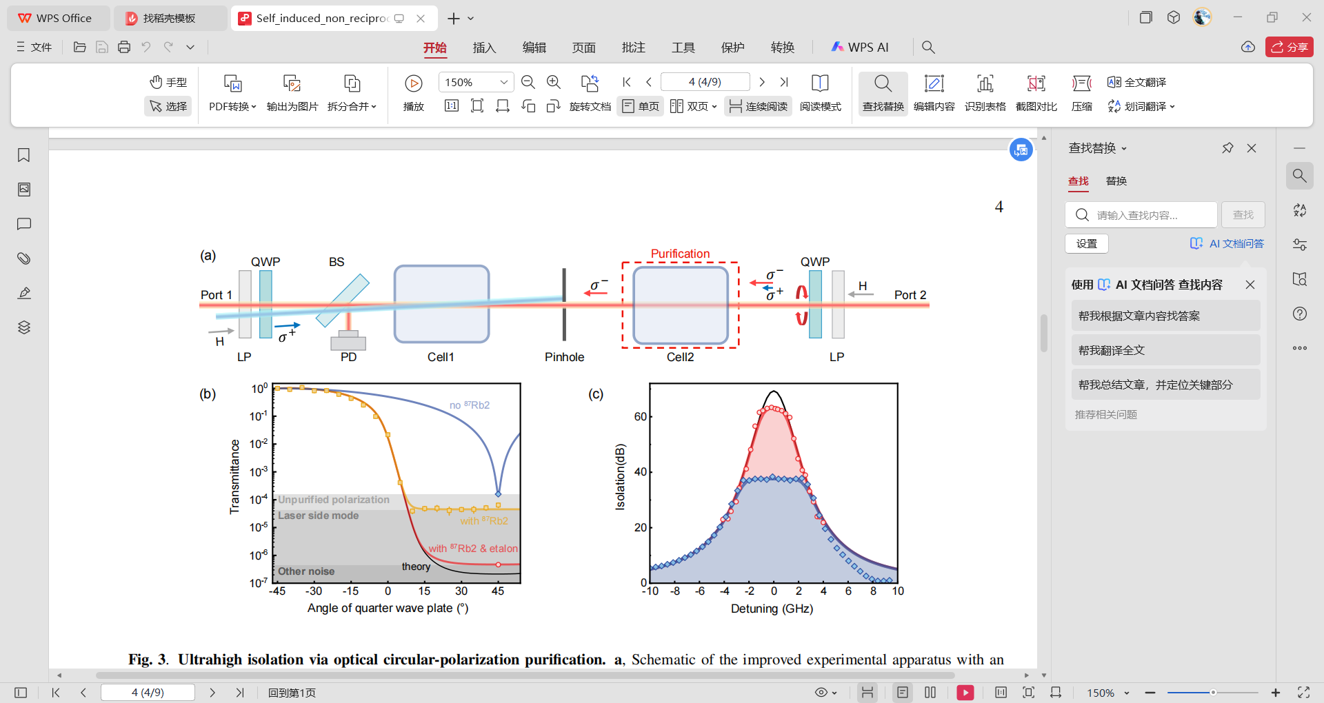 基于自诱导非互易原理,团队在原子系综介质中实现的隔离器具有63.4 dB的隔离比(如图2c所示),创造了当前世界上无磁非互易的最高记录。同时,该隔离器在12.5 GHz的带宽内实现了超过20 dB的隔离效果,带宽比以往同样基于原子系综的隔离器高出一个数量级。此外,自诱导非互易还展现出在高消光比圆偏振纯化器中的应用潜力,能够产生纯度超过60 dB的圆偏振光,并对入射光偏振状态具有较强的鲁棒性。