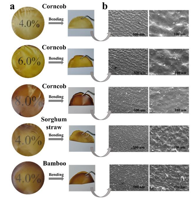 图2.采用新型绿色溶剂全溶解后再生的全生物质生物可降解膜材料