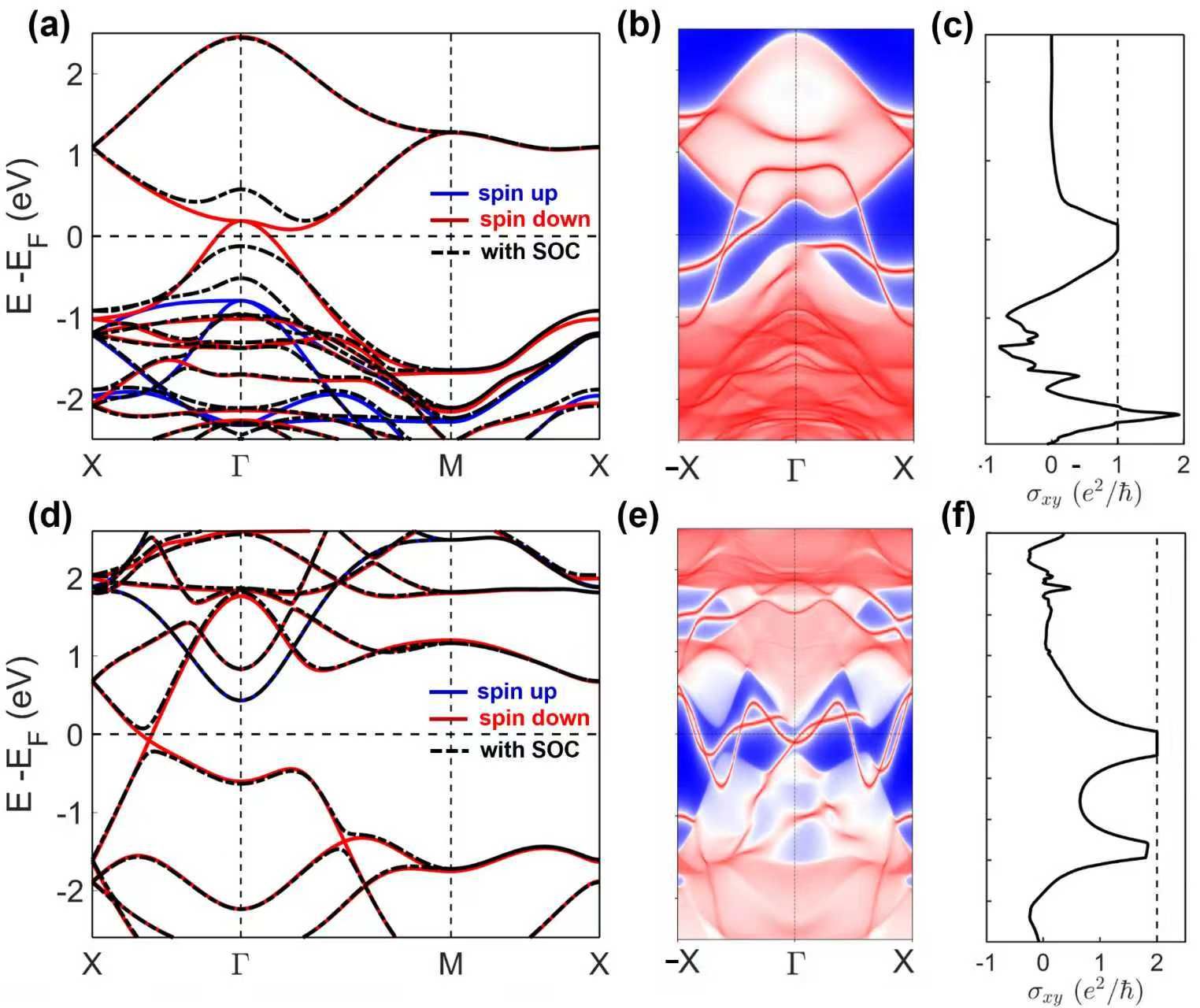 (c)随费米能变化的反常霍尔电导σxy;(d)-(f)为Fe2Br2的对应结果。