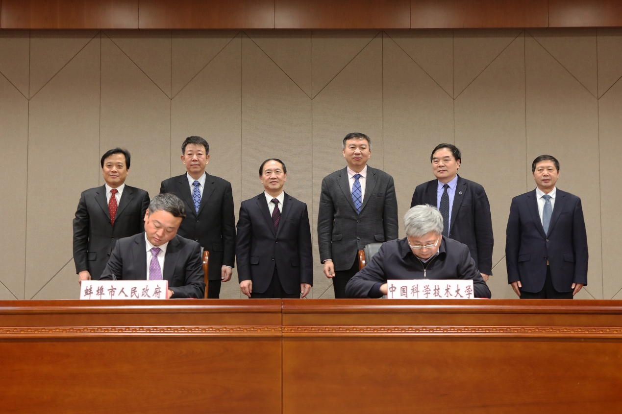 会上,舒歌群、包信和与蚌埠市委书记汪莹纯、市长王诚、市人大常委会主任倪建胜、市政协主席杨森共同见证签约仪式。朱长飞与蚌埠市委常委、常务副市长郑东涛分别代表中国科大和蚌埠市人民政府签署合作协议。