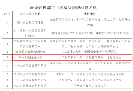 9月30日,应急管理部发布《关于批准建设应急管理部重点实验室的通知》(应急函〔2021〕114号),由我校牵头,联合应急管理部四川消防研究所共同申报的“森林火灾监测预警应急管理部重点实验室”位列首批挂牌组建名单。