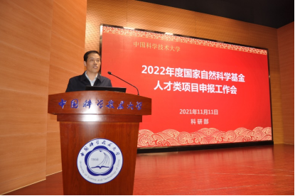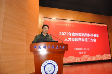 蒋一副书记首先做了申报工作动员讲话,他强调我校历来高度重视年轻人才的培养,总结了学校人才工作的要点,即“平台、静心、交叉”。科大作为国家的战略科技力量,具有重视交叉学科研究、静心做科研的传统,年轻科研人员应依托科大先进的平台,提高站位,面向国家重大需求,围绕国家重大工程进行科学研究,努力解决卡脖子问题,多做交叉研究,乘势而为,乘势而上。科研工作者要保持良好心态,坐得住冷板凳,守得住梅花香,静心才能做成大事;要有团队意识,恪守科研道德。