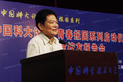 他指出,在科大的精神文化中,一直就坚持创新报国、创新强国的理念,在任何时候,我们的大学生都要有强烈的爱国激情,但是在改革开放和经济全球化的时代,必须理性地表达我们的爱国情怀。他希望广大青年学生牢固树立远大目标,踏实认真地学好各门功课,掌握过硬的科技本领,紧紧抓住当前难得的发展机遇期,做有益于国家强大的事,做一个成熟的、理性的爱国主义者,为把我国建成创新型国家,把国家建设得更富更强而努力。
