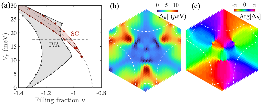 图:(a)超导与谷间反铁磁相图;(b),(c)超导序参量。